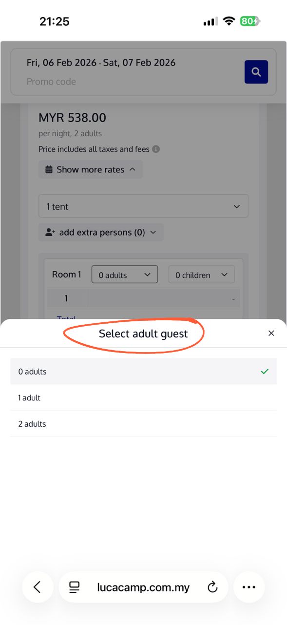 · For each tent, add the number of guests staying (including children and babies)